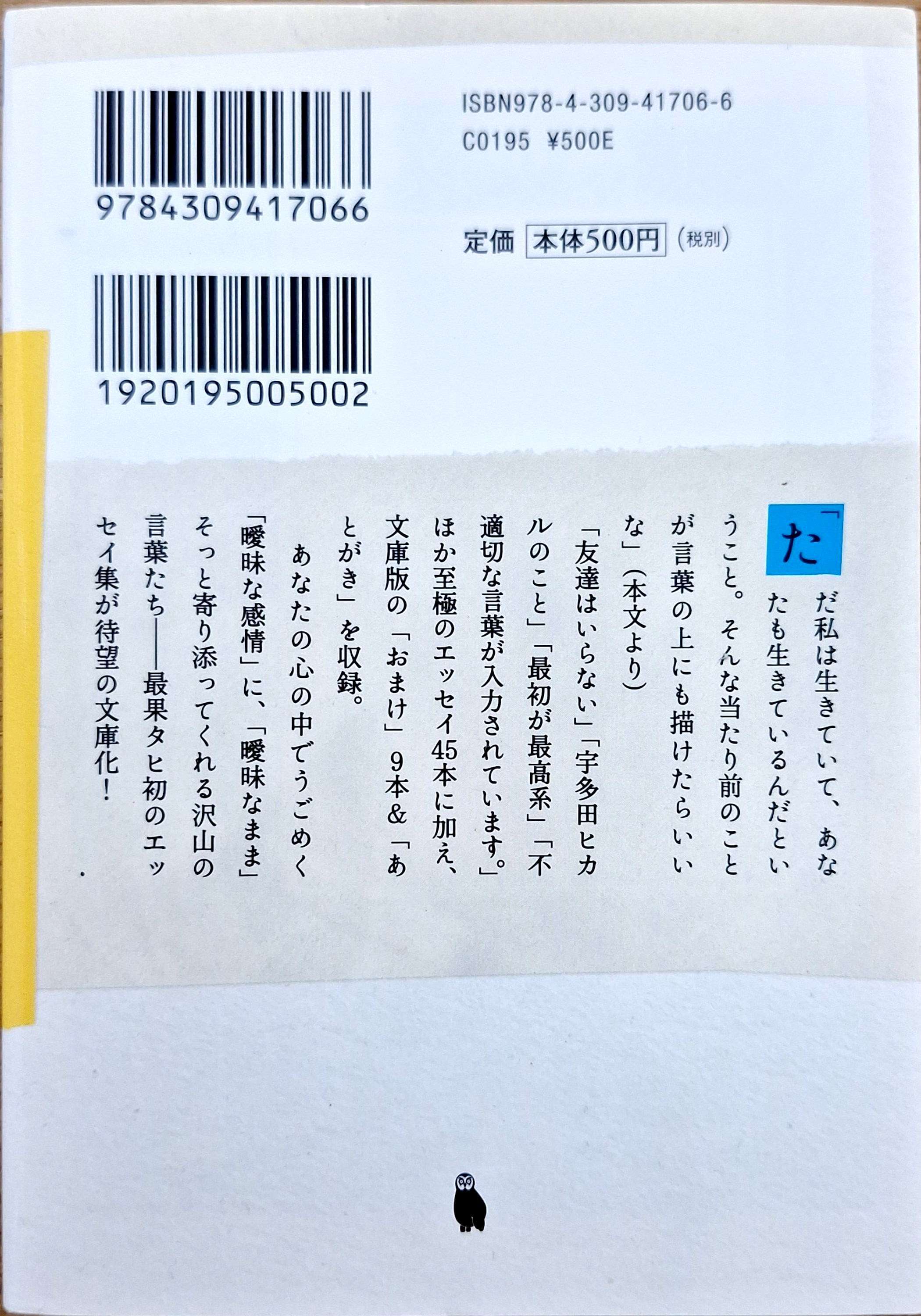 至極のエッセイ45本に加え、文庫版の「おまけ」9本&「あとがき」を収録。あなたの心の中でうごめく「曖昧な感情」に、「曖昧なまま」そっと寄り添ってくれる沢山の言葉たちー最果タヒ初のエッセイ集が待望の文庫化!