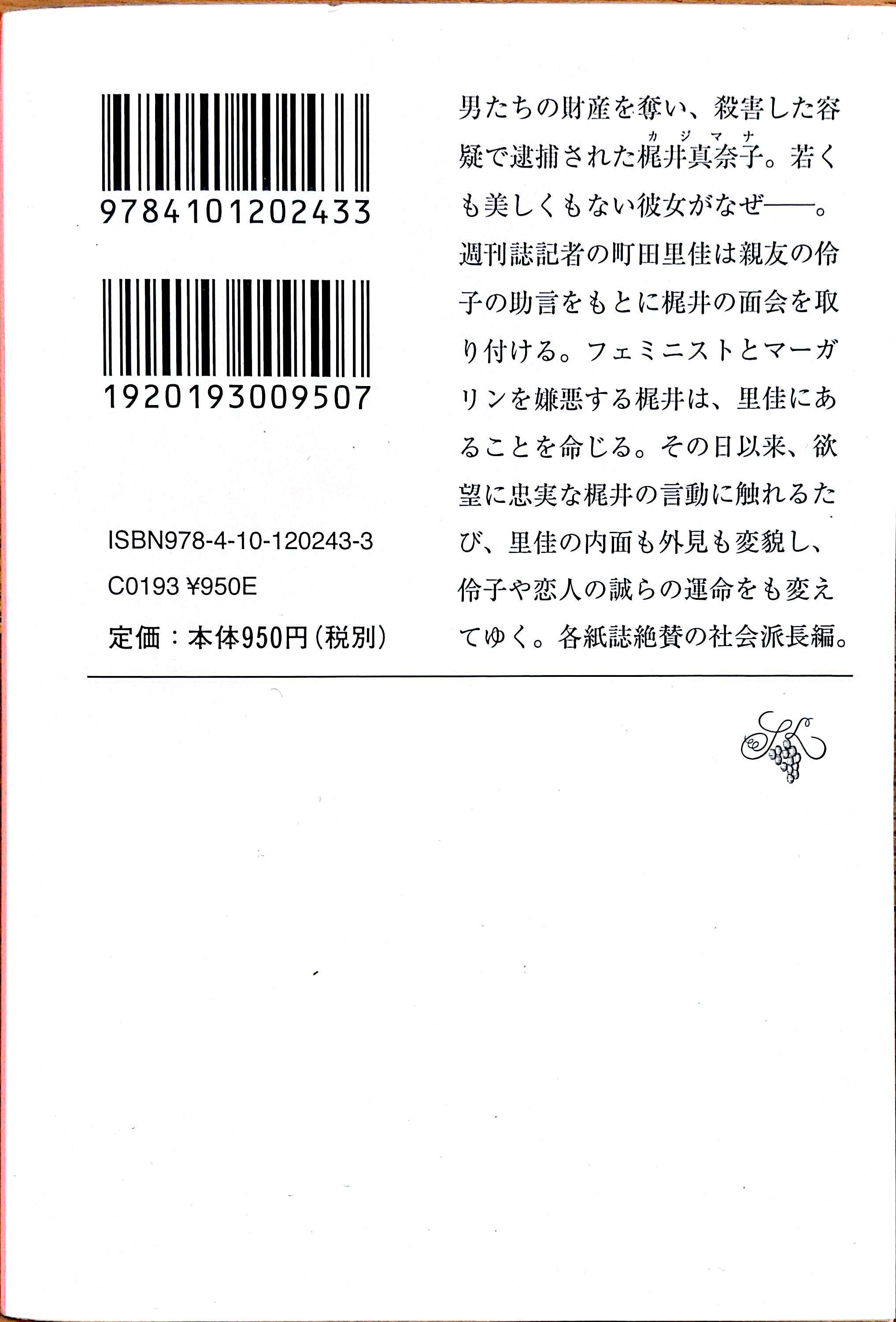 男たちの財産を奪い、殺害した容疑で逮捕された梶井真奈子。若くも美しくもない彼女がなぜー。週刊誌記者の町田里佳は親友の伶子の助言をもとに梶井の面会を取り付ける。フェミニストとマーガリンを嫌悪する梶井は、里佳にあることを命じる。その日以来、欲望に忠実な梶井の言動に触れるたび、里佳の内面も外見も変貌し、伶子や恋人の誠らの運命をも変えてゆく各紙誌絶賛の社会派長編。